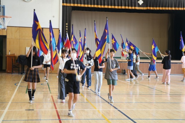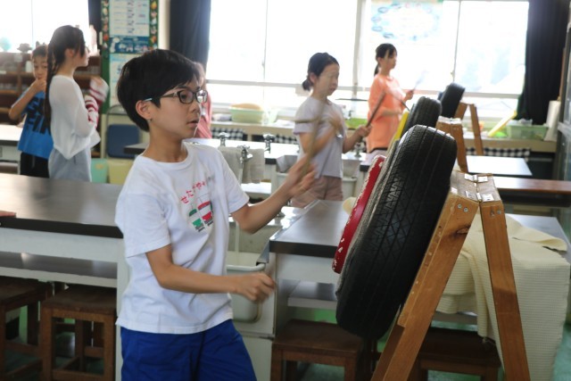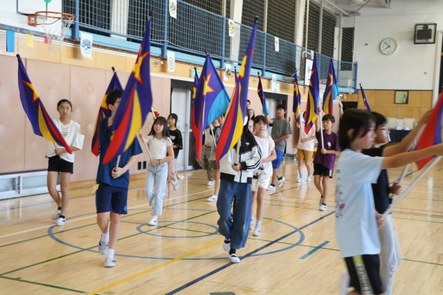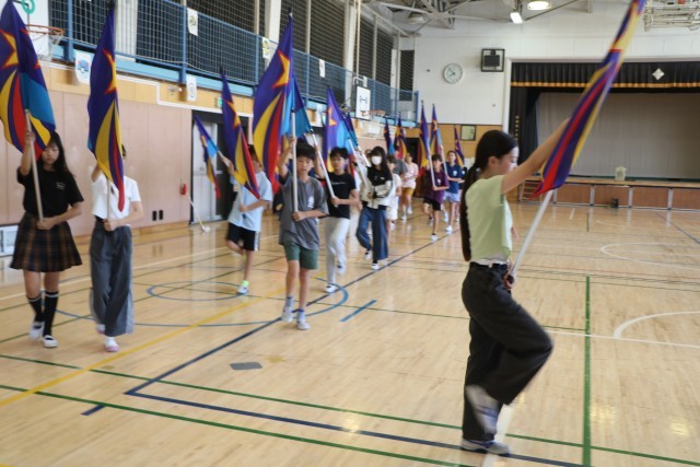 今朝も「太鼓っ子」と「鼓笛隊」の朝練習です。昇降口に出ると