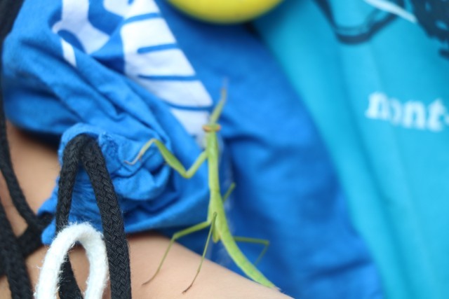 「先生見て!かわいいでしょう!?」・・・と、かわいい掌にかわいいカマキリがいました。