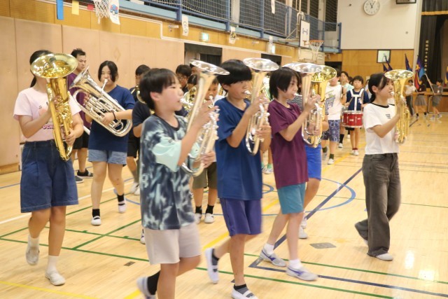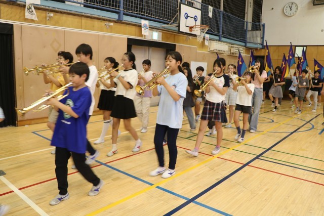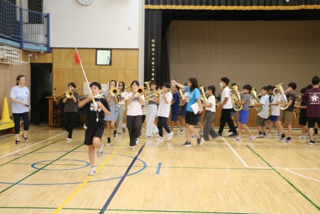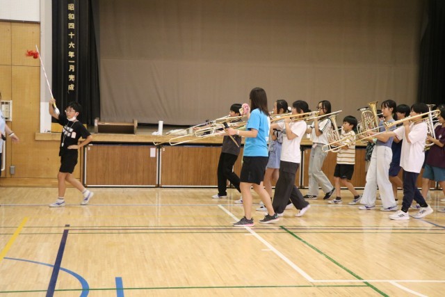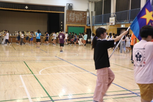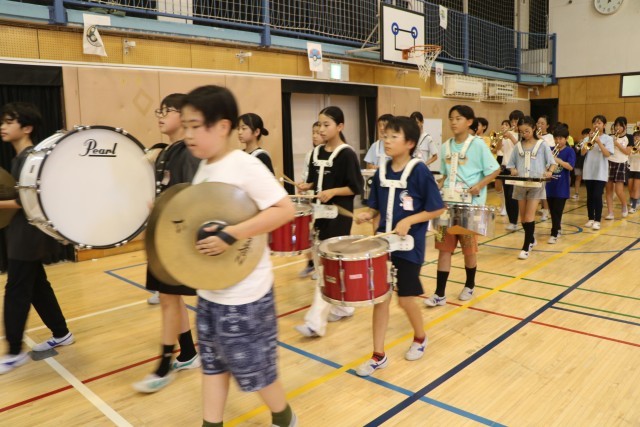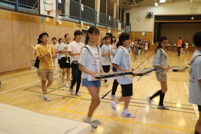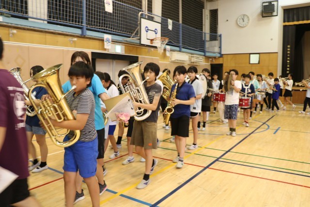6年生音楽の様子です。直射日光のもと外の練習では暑いだろうと体育館で行いましたが、それでも暑い。でも子どもたちの表情は真剣で、充実した練習ができましたので短時間で切り上げました。19日夏祭り当日は石井戸公園を出発し学校までの道のりです。沿道からミストシャワーを出してくださる家もあり、保冷剤を全員首に巻き、随時給水しながらパレードさせていただきます。