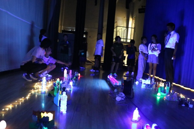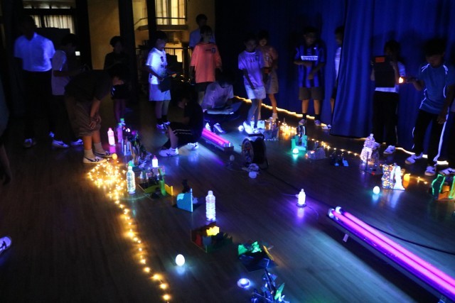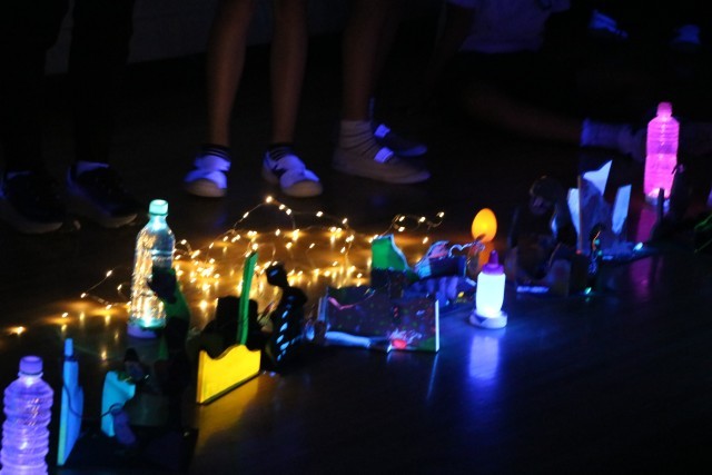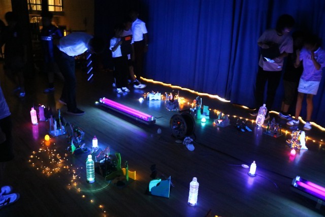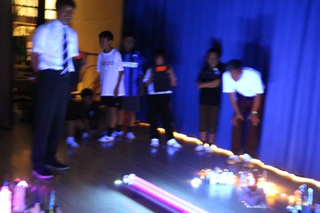 アナウンスの声を合図に3・2・1とみんなのカウントダウン、そして電気が消えたとたん、何とすてきな世界が!!まさに深海の世界です。