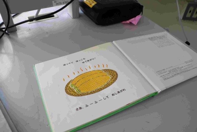 とうもろこしが出てくる絵本の読み聞かせを聞いて待っているクラスもありました。