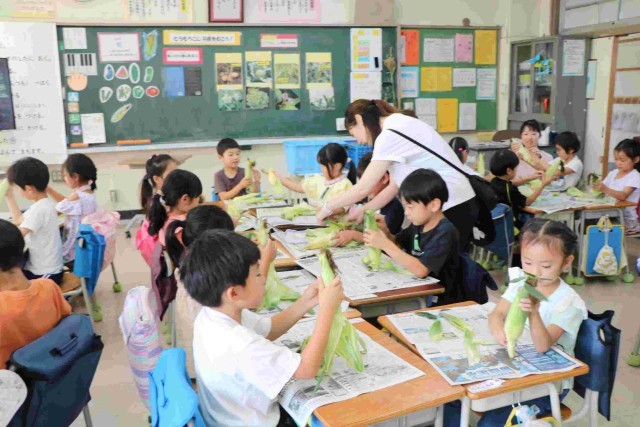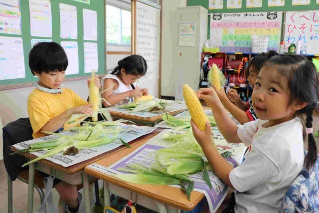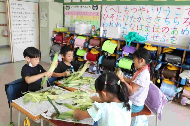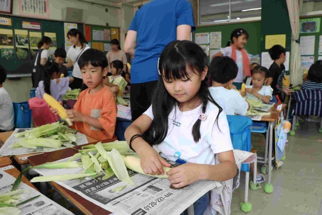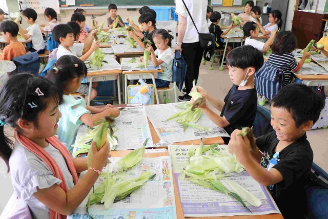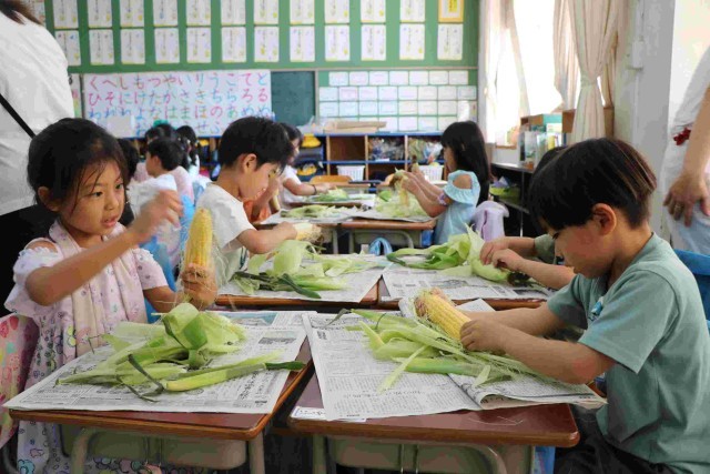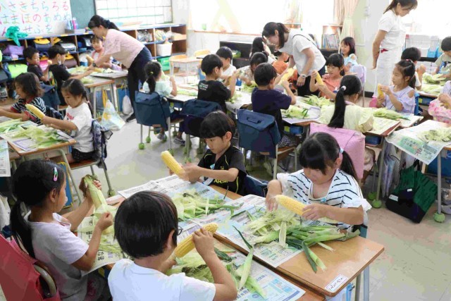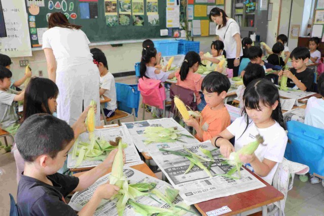 3組の皮むきの様子です。皮やひげをすべて取り切って、栄養士の先生の合格をもらおうと頑張りました。