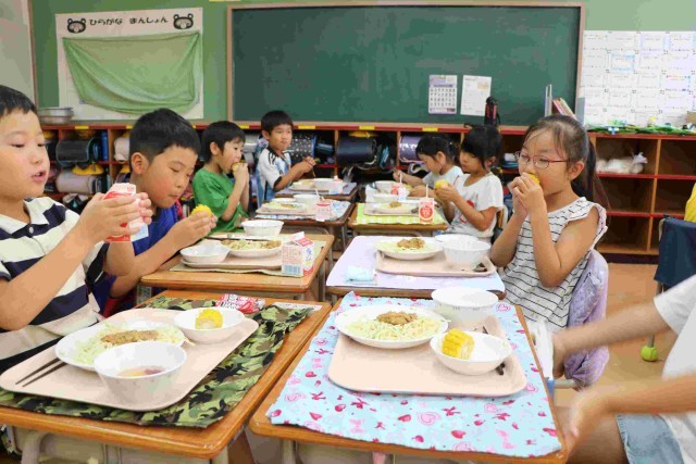 みんな喜んで、いただきますをするとまずとうもろこしをおいしそうに食べていました。