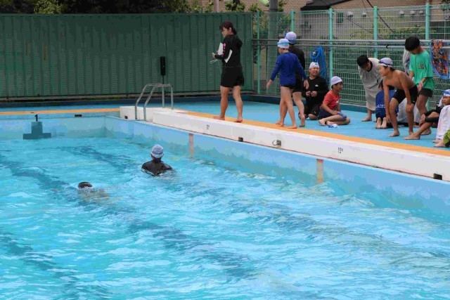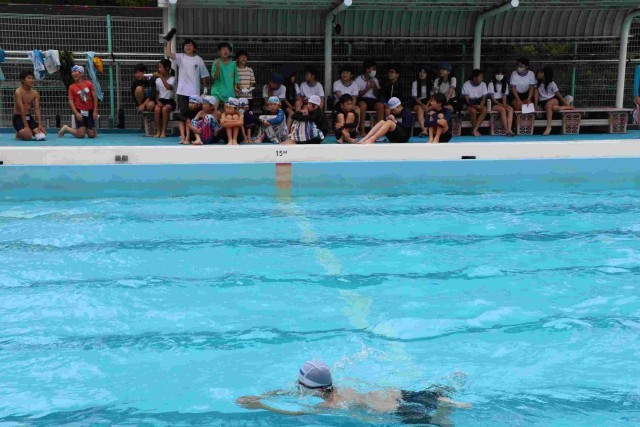 先生たちの応援にも力が入りますが、6年生は友達の応援もすばらしかったです。プールサイドで待つ友達、見学の友達から、「がんばれ!」「あと半分!」など声がかかり続けます。