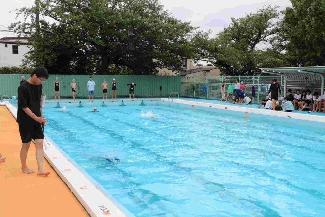 今日の天気だと、プールサイドに上がってからが少し寒いかもしれない陽気でしたが、そんなことは全く感じさせない6年生の活気に満ち溢れたすてきな検定の風景でした。