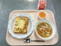 【今日の献立】・ツナコーンチーズトースト・白インゲン豆の田舎風スープ・キャロット...
