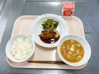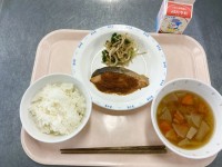【今日の献立】・ごはん・魚の生姜風味焼き・わかめと野菜のあえもの・味噌汁・牛乳