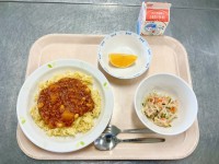 【今日の献立】・スパゲッティ地中海ソース・イタリアンサラダ・スイートポテト・牛乳