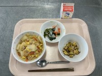 【今日の献立】・サッポロラーメン・大根とわかめの甘酢かけ・お豆かりんとう・牛乳今...