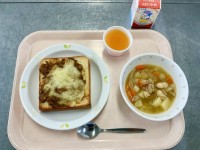 【今日の献立】・ドライカレーチーズトースト・白インゲンまめの田舎風スープ・キャロ...