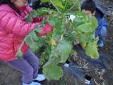 今日は3年生が大根の収穫をしました。「大きい大根だから記念撮影してください。」「...