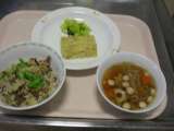 1月28日 五目ごはん 牛乳 切り干し大根の卵焼き キャベツの塩こんぶか...