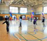 6年生の頼もしい表情がとっても印象的です。5年生も、だんだんとフラッグが扱えるよ...