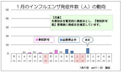 ◎本日の学校感染症 12人 【内訳】 インフルエンザA型(新0,継3) ...