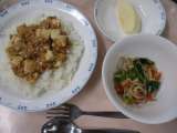 麻婆豆腐丼も人気のある献立のひとつです。豆腐には栄養がたくさんふくまれているので...