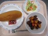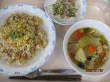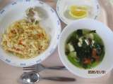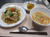 オリパラ給食、中国の料理です。スーチンチャオメンは五目あんがかかった焼きそばです...