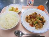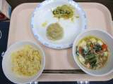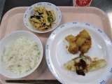 学校給食週間の献立として、今日は昭和時代の給食にしました。昭和51年に米飯給食が...