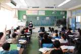 2年生日本語・漢詩の様子です。黒板には漢詩の白文が貼ってありますが、教科書には書...