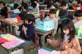 4年生音楽の様子です。すてきな手作りの楽器紹介ビデオを見ながら、いろいろな楽器に...