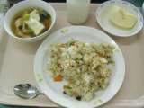今日の給食10月11日(木) チャーハン 豆腐汁 くだもの 牛乳
