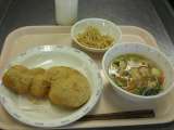 10月14日 揚げパン 牛乳 肉だんご入り春雨スープ ごま酢かけ ...