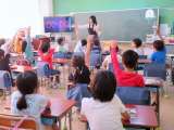 得点を入れると「イエーイ!、ヤッター!」と、教師も一緒に喜びを分かち合っています...