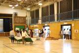 6年生が体育館の片づけをしました。学芸会に向けて、使わない体育用具をプール横の倉...