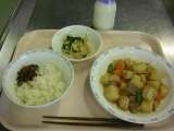 11月10日 ごはん ふりかけ 牛乳 肉じゃがうま煮 もやしサラダ ...