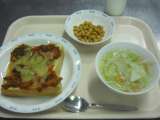 11月11日 ピザトースト 牛乳 野菜スープ カレービーンズ 主...