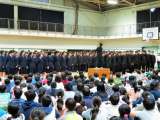 最後に、歓迎の歌ということで2年生全員による、合唱コンクール課題曲「時の旅人」を...