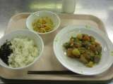 12月 8日 ごはん ふりかけ 牛乳 豆入り筑前煮 もやしのカレー風...