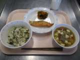 12月14日 五目ごはん 牛乳 魚のカレー揚げ 白菜のおかかかけ み...