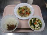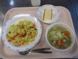 12月11日 鮭ピラフ 牛乳 ベーコンと野菜のスープ 豆腐のナゲット...
