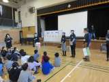 12月19日(土) 5年生から6年生へ 体育館では、フラッグ隊とメジャーの担当が...