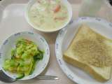 2月21日(木)今日の給食 セサミトースト コーンシチュー 野菜のドレッシングか...
