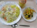 2月4日(月)今日の給食 ツナピラフ クリームスープ リンゴゼリー 牛乳