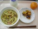 1月31日(木) 今日の給食 カレーうどん いかとさつまいもの揚げに くだもの ...