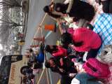 今日の集会は、たて割り班対抗ボール運びレースでした。ラケットの上にボールを乗せて...