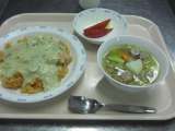 2月27日 チキンドリア 牛乳 キャベツとウインナーのスープ くだもの ...