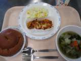 今日の魚はたらです。たらの上に手作りピザソースをかけて上からチーズのせてオーブン...