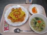 おえかきオムライスはケチャップで好きな絵を描ける給食です。サンプルケースのオムラ...