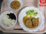 今日は鶏ひき肉でつくねを作りました。上からあんをかけています。ごはんを中心に、肉...