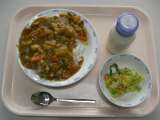 カレーライス 福神漬け 伽べ手サラダ 牛乳