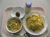 パエリア ヌードルスープ まさご揚げ 牛乳
