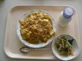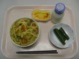 カレーうどん チーズケーキ きゅうりの甘酢かけ 牛乳