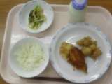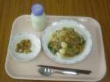 4月16日 中華丼 牛乳 大豆とじゃこの甘辛あげ 主な食材と産地 にんにく ...