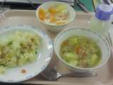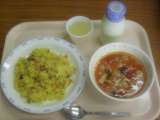 4月12日 パエリア 牛乳 ミネストローネ りんごゼリー とり肉 ...