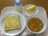 4月23日 ガーリックトースト 牛乳 ビーンズシチュー くだもの ...