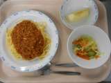 「今日の給食はミートソースです。」とお当番さんが献立を読みあげると、「やったー!...