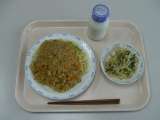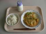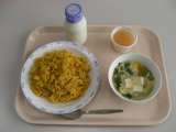 カレーピラフ 卵とにらのスープ アセロラゼリー 牛乳